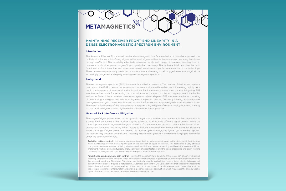 The Autotune Filter (AtF) is a novel passive electromagnetic interference device. It provides suppression of multiple simultaneous interfering signals while small signals within its instantaneous operating band pass through unaffected. This capability effectively enhances the dynamic range of receivers, enabling them to process a much wider power range of input signals than previously. This technical brief describes the basic functionality of autotune filter and introduces several variations and performance metrics of the technology. These devices are particularly useful in communications and sensing to help ruggedize receivers against the increasingly congested and rapidly evolving electromagnetic spectrum.